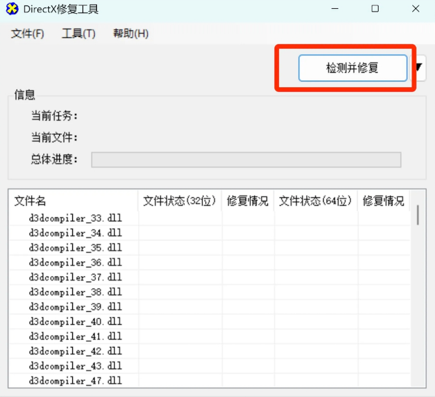 五、DirectX修复工具开始修复 程序打开后,界面挺简洁。直接点 “检测并修复” 按钮,它就开始检查电脑里 DirectX 相关文件啦。一边查一边修,像 d3dx9_28.dll 这些文件,要是有缺失或损坏,它都能处理 。