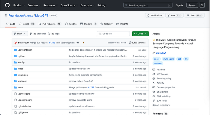 MetaGPT 是一个开源的多 Agent 框架,利用 LLM 编排 AI Agent 来模拟协作解决问题。MetaGPT 由 Chenglin Wu 创立,其 GitHub仓库已获得超过 5.6 万星标,这表明开发者们非常喜爱这款灵活且易于使用的开源 Agentic 框架。
