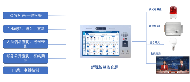 1. 狱务公开信息发布:通过监仓内的可视对讲终端显示屏,向犯人发布狱务公开信息,包括监狱规章制度、奖惩情况、减刑假释政策、法律援助信息等。让犯人及时了解监狱管理动态与自身权益,促进监狱管理的公平公正与透明化。