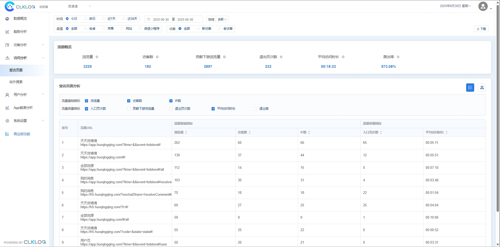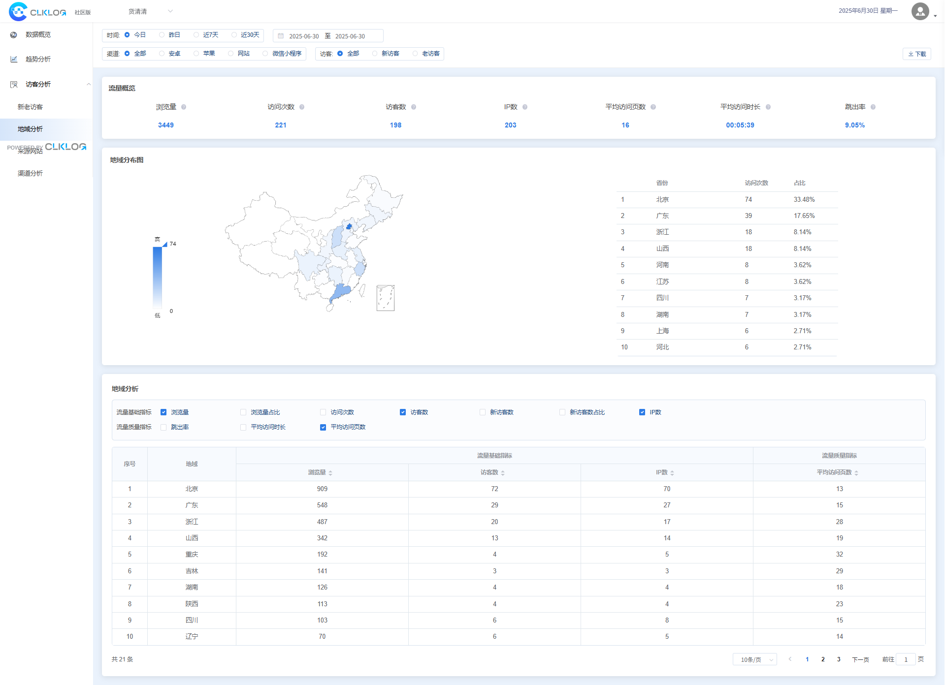 ClkLog社区版虽然是开源免费版本,但已覆盖网站分析的基础能力,可以帮助你快速掌握网站访问现状、评估渠道表现、优化内容策略,是网站运营和数据采集的理想起点。