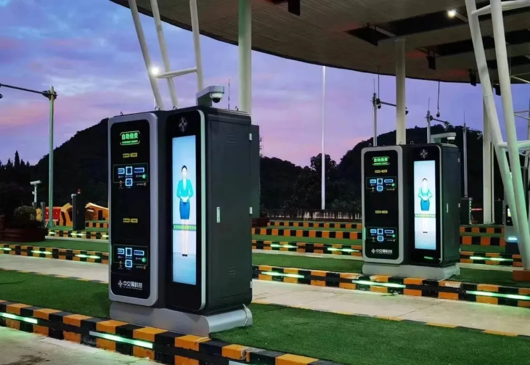 中交高速7月建设了无岗亭智慧收费的示范站,在自助收发卡机上通过一块大屏幕展示了AI数字人的交互系统。