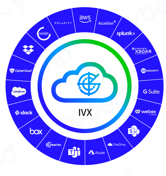 IVX 与 AWS 、 Azure 等云服务、Slack、MS 365 和 Google Workspace 等协作平 台以及 Dropbox 、 Box 、 OneDrive 等云存储工具集成。 它还与许多企业应用程序集成,例如 Salesforce 、 Webex 、 Slack 、 Microsoft Teams 等。您可以通过 Trellix 易于使用的 API ,轻松地与尚无插件的应用程序集成。