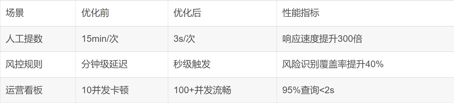 通过上述优化方案,系统不仅实现了对基于 Hive +传统数据库等跑批流程的替代,还有效提升了数据处理效率与任务调度的稳定性,构建了统一、高性能的离线计算平台。