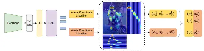 RTMPose 引入SimCC(Simple Coordinate Classification)算法,直接将 x/y 方向的坐标预测任务转为分类问题:
