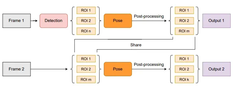 RTMPose 采用Top-Down 结构:先使用轻量检测器(如 YOLOv3、RTMDet)框出人,再对每个框进行单人姿态估计。