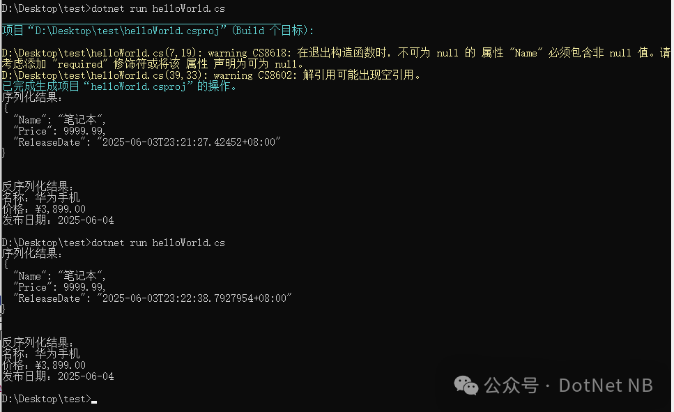 Console.WriteLine("反序列化结果:");
