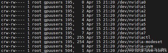 的所属组 (比如gpuusers):for dev in /dev/nvidia*; do [[ "$dev" != /dev/nvidia-caps* ]] && sudo chgrp gpuusers "$dev" && sudo chmod 660 "$dev"; done