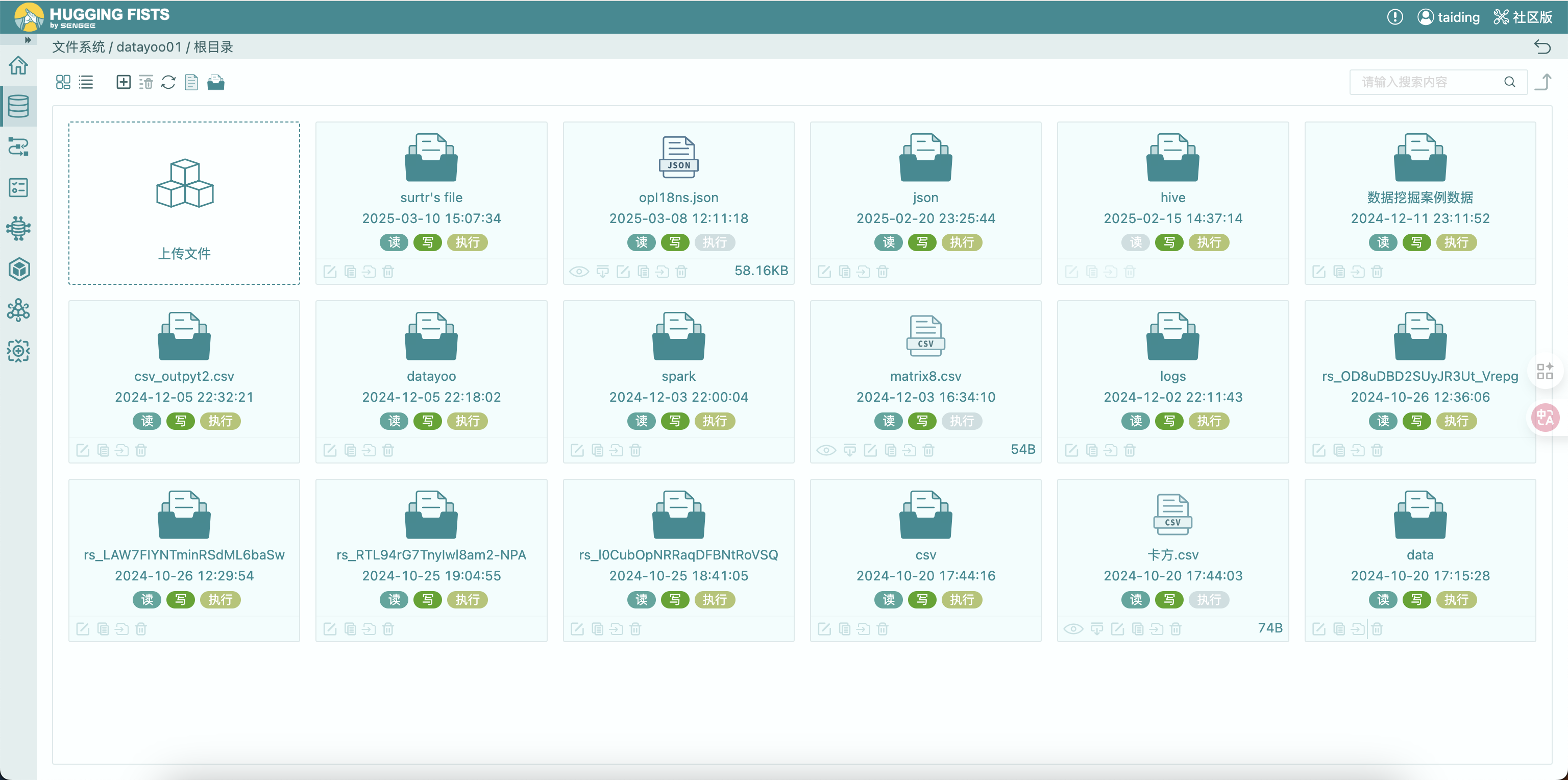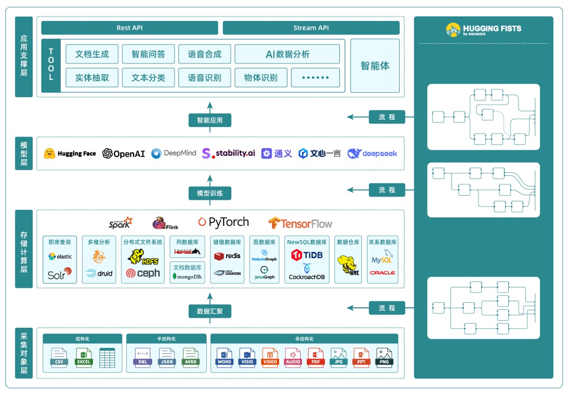 不论是传统数据库,还是复杂的文件系统,甚至是实时事件流,HuggingFists 都能轻松接入,为数据分析和后续AI训练奠定坚实基础。