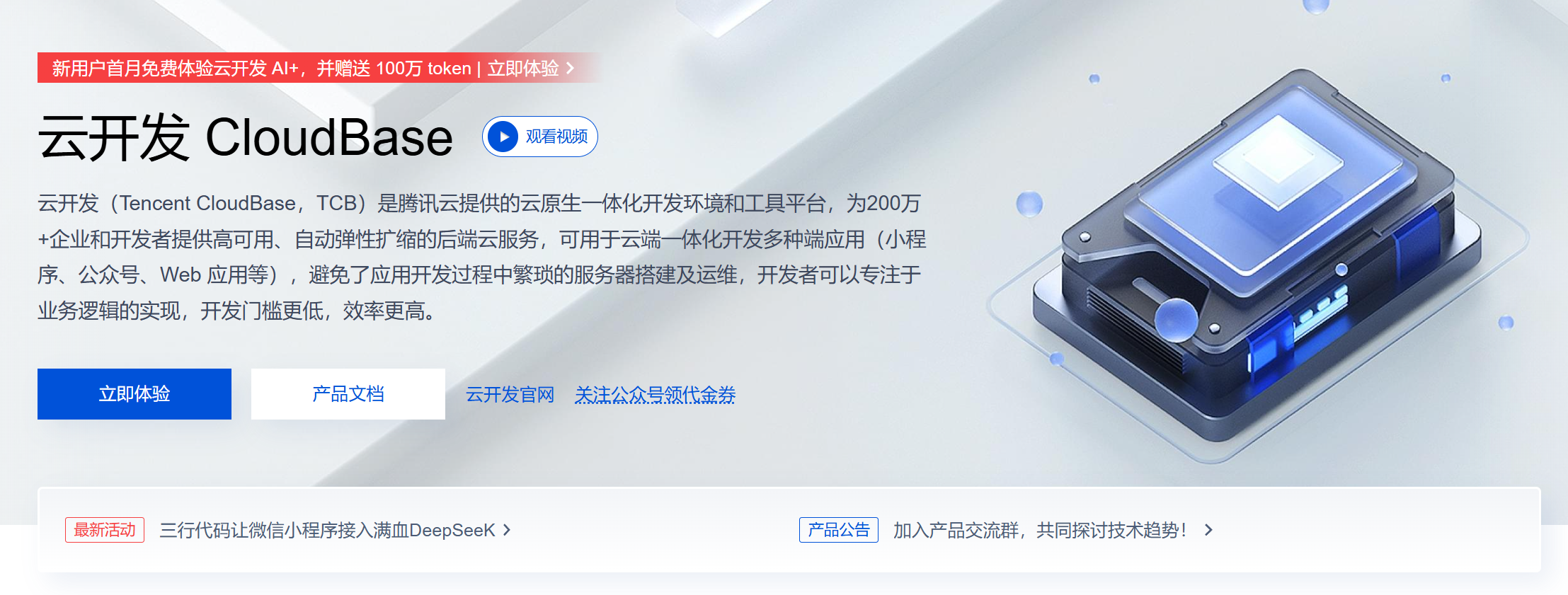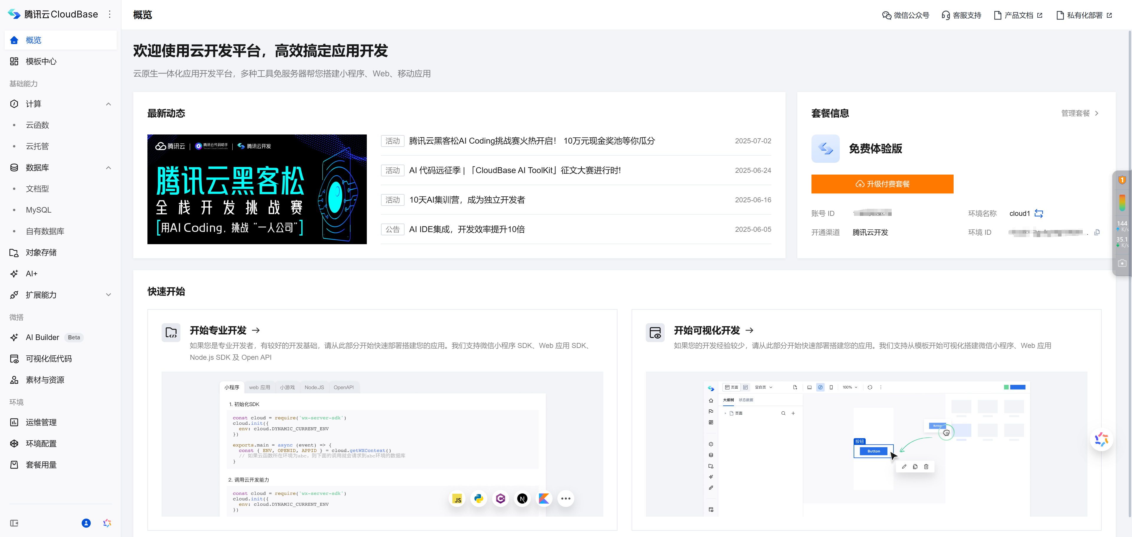 先去云开发CloudBase的官网(tcb.cloud.tencent.com),注册个账号开通环境。新用户可以直接领个免费环境用,登录平台注册完就能体验了。