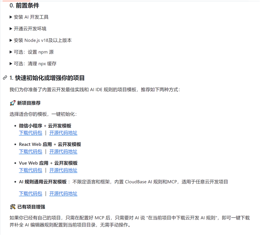 先照着云开发的文档和教程一步步来,开发的时候看页面上的操作提示,想用哪个示例项目代码环境就直接下载就行。