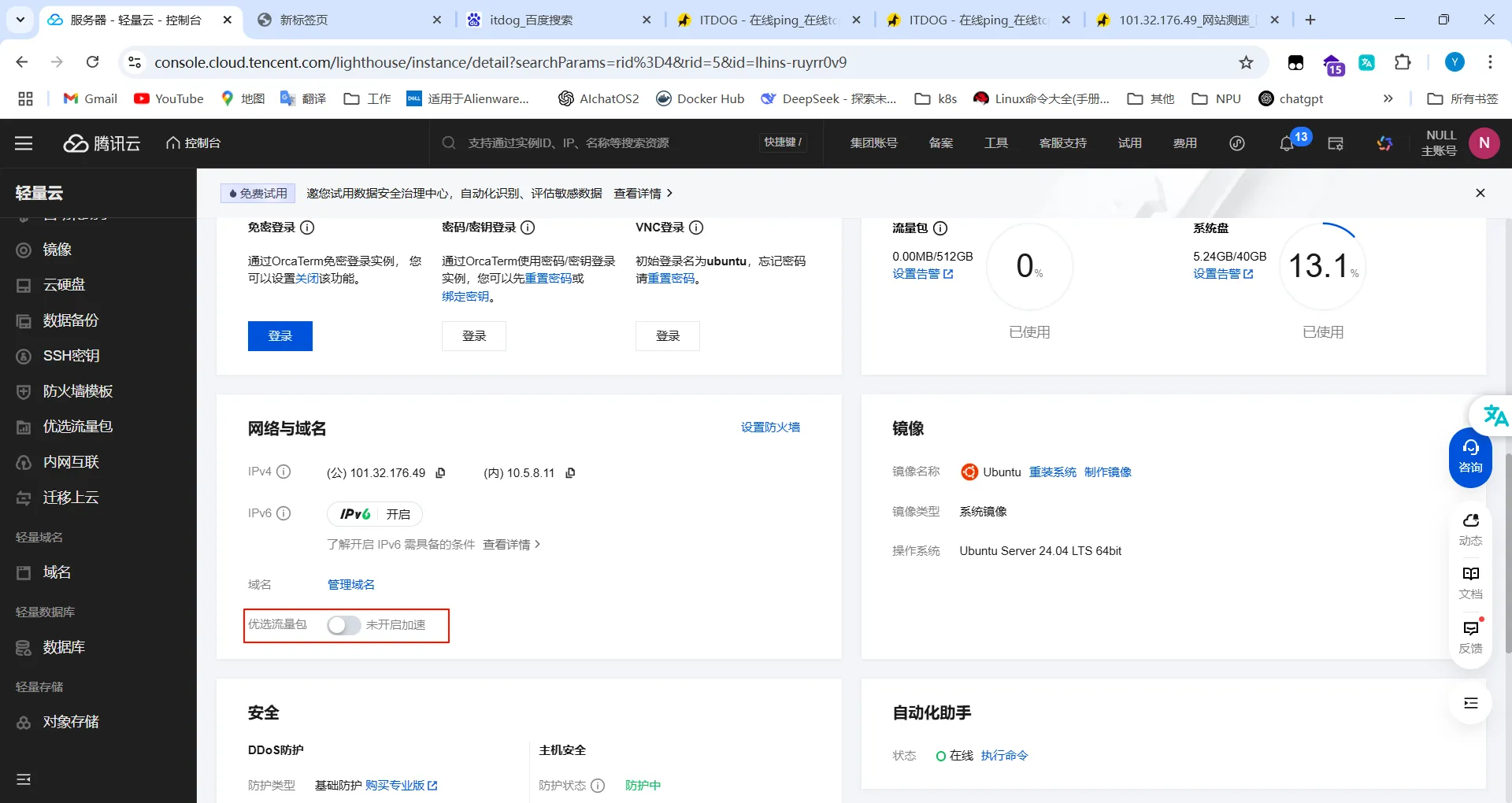 开启轻量优选流量包,在国内访问速度确实明显提高,时延更低,可有效提升境外业务对中国大陆用户的访问质量,但是这也会增加一笔开销,不过对于有这方面的需要,不过这个问题也不大。目前腾讯只有香港节点,新加坡还能内测,后面应该会扩大地区。