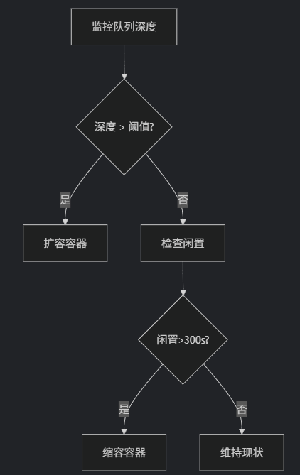 图3:自动伸缩决策树。基于SQS队列深度动态调整容器数量,扩容动作在500ms内完成,缩容延迟确保完成中的请求不被中断。