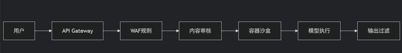 图4:安全防御纵深体系。橙色路径展示请求流经的多重防护,包括:提示词黑名单过滤、NSFW内容检测、容器文件系统只读挂载、输出图像水印注入。