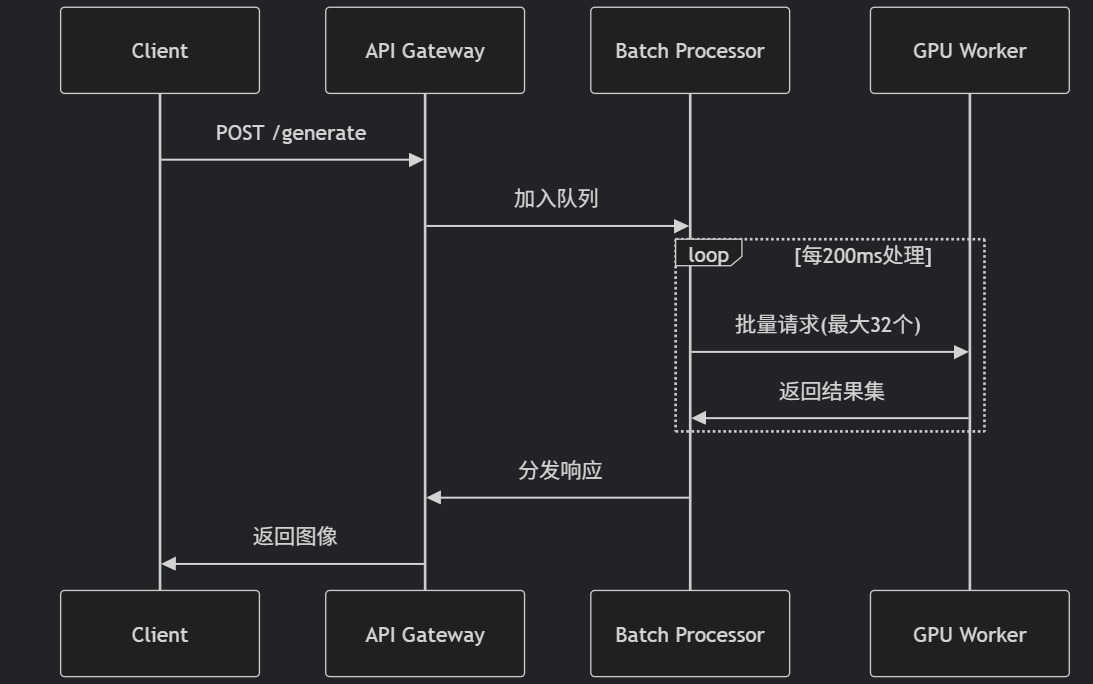 图2:请求批处理时序图。通过异步队列聚合请求,单次推理处理最多32个提示词,GPU利用率提升300%,显著降低单位请求成本。