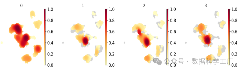 一种是密度图,另一种是在嵌入中对类别/组的一个子集的部分可视化。