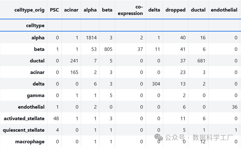 我们首先关注与参考数据一致的细胞类型,以便简化混淆矩阵的阅读。
