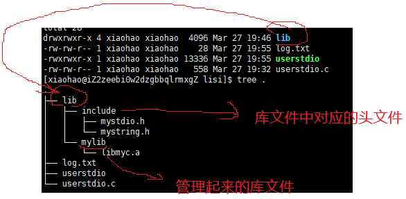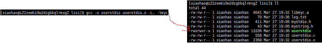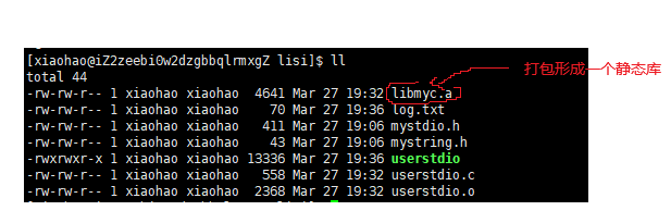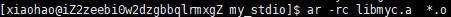 ar表示将文件进行归档,归档后的文件叫libmyc.a,即一个静态库,这个静态库的库名叫“myc”。-rc表示,如果将.o文件进行打包时,有新增的文件,则直接打包进去即可(c),如果.o文件的内容更新了,直接将更新后的.o文件对包中的对应源文件进行替换即可(r)。简单讲就是:需要替换的就替换,有需要一起打包的新源文件就直接一起打包