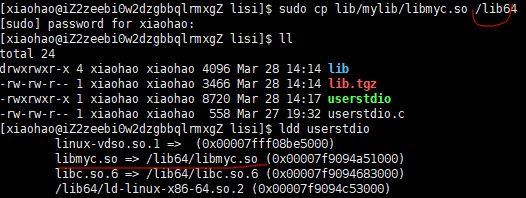 库也是被安装到系统中的。linux下,库在/usr/lib64路径下,头文件在/usr/include路径下 对于库的安装,就是将库的头文件与库文件拷贝到系统指定目录下,在链接时,只需要“-l+库名”就可以了。