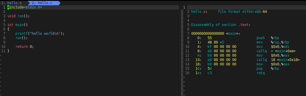 对.o文件进行反汇编,我们看到callq的地址是00 00 00 00,这是因为编译器编译.c文件时不知道调用函数的地址是多少,所以先暂时设为0
