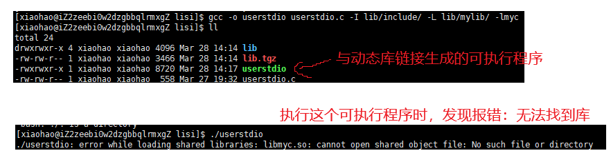 对库进行链接会发现,能生成指定的可执行程序,但是依然会报找不到库的错误