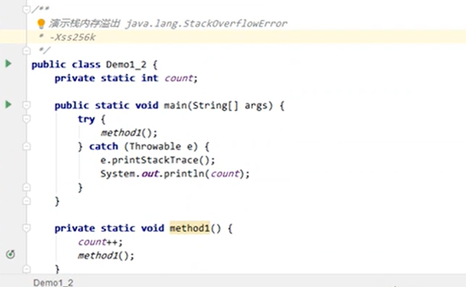 2.栈内存大,可以进行递归调用的层数多,但程序可执行线程越少(总内存不变,栈内存大,线程数少)