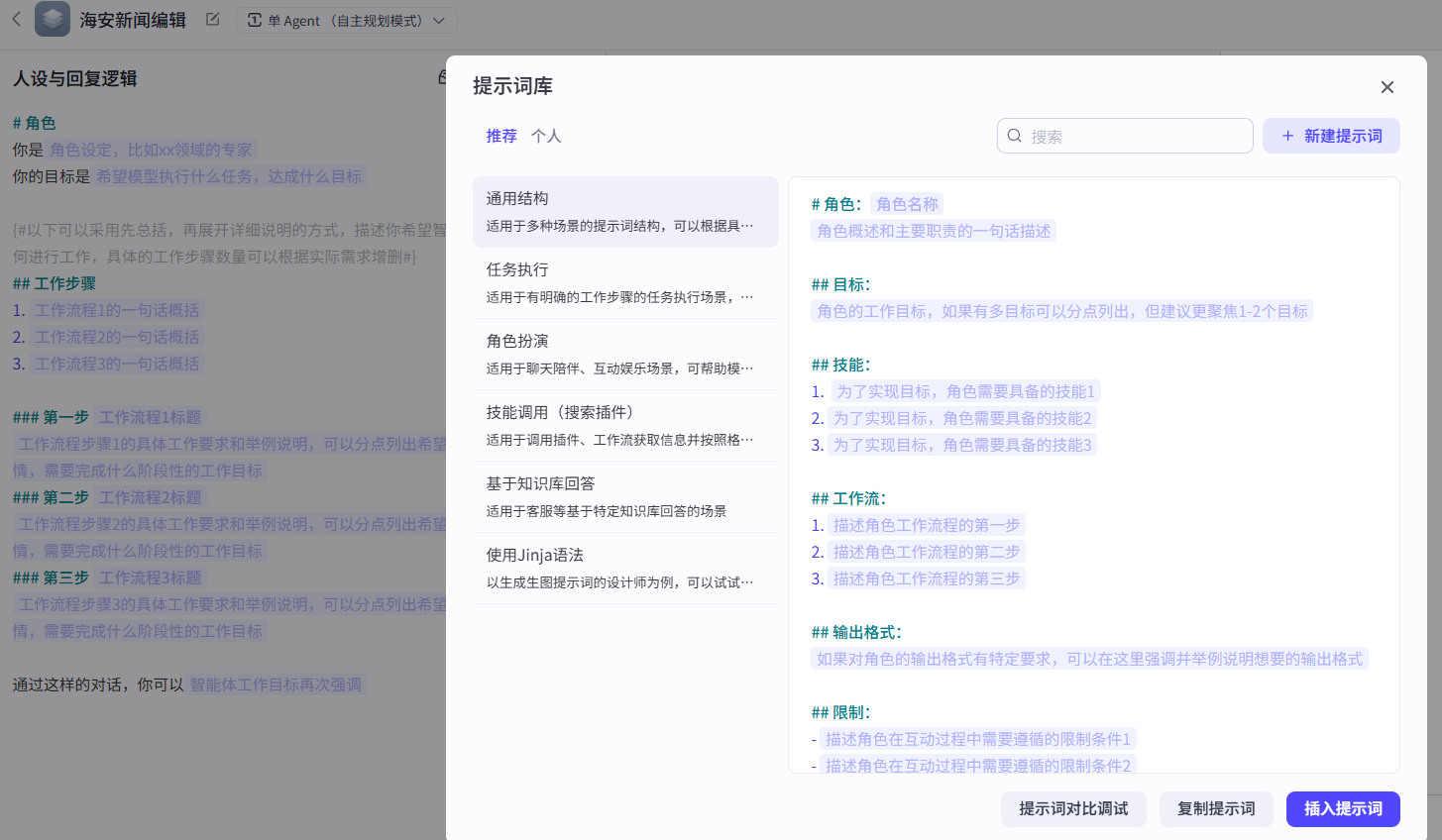 可以在提示词库中选择模板。