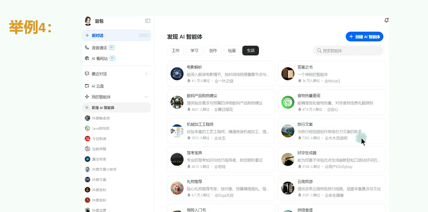 豆包内嵌的各种智能体。