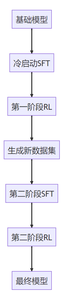 基于Zero的实验发现,DeepSeek团队设计了创新的两阶段训练方案: