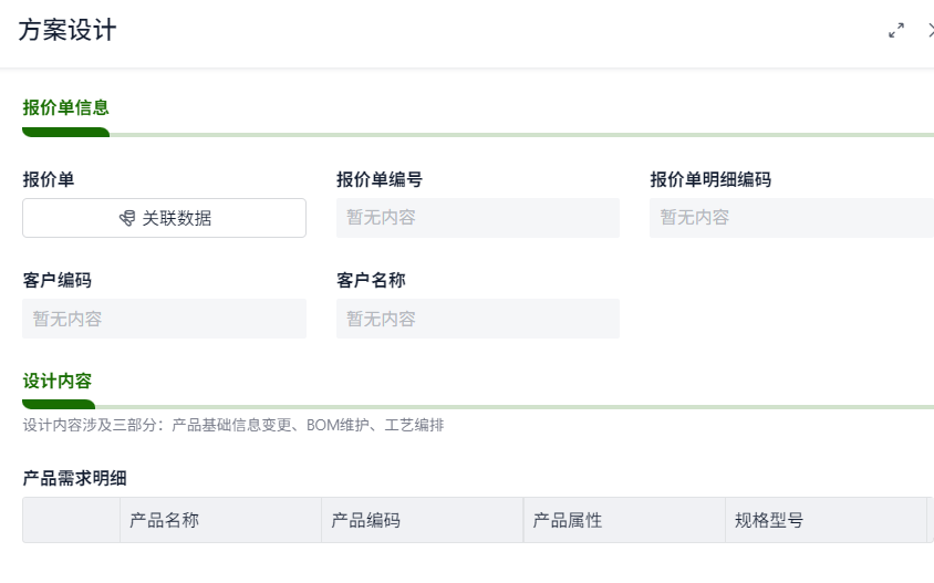 在ERP系统中,方案设计是技术管理板块的一个基础环节。它不仅仅是数据的展示与输入,更是连接企业生产管理各环节的重要纽带。下面我们将详细拆解方案设计中的各个部分。