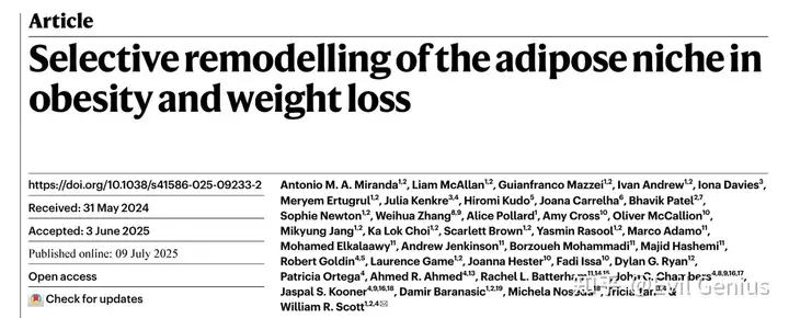 顶刊分享---肥胖和减肥中脂肪生态位的选择性重塑