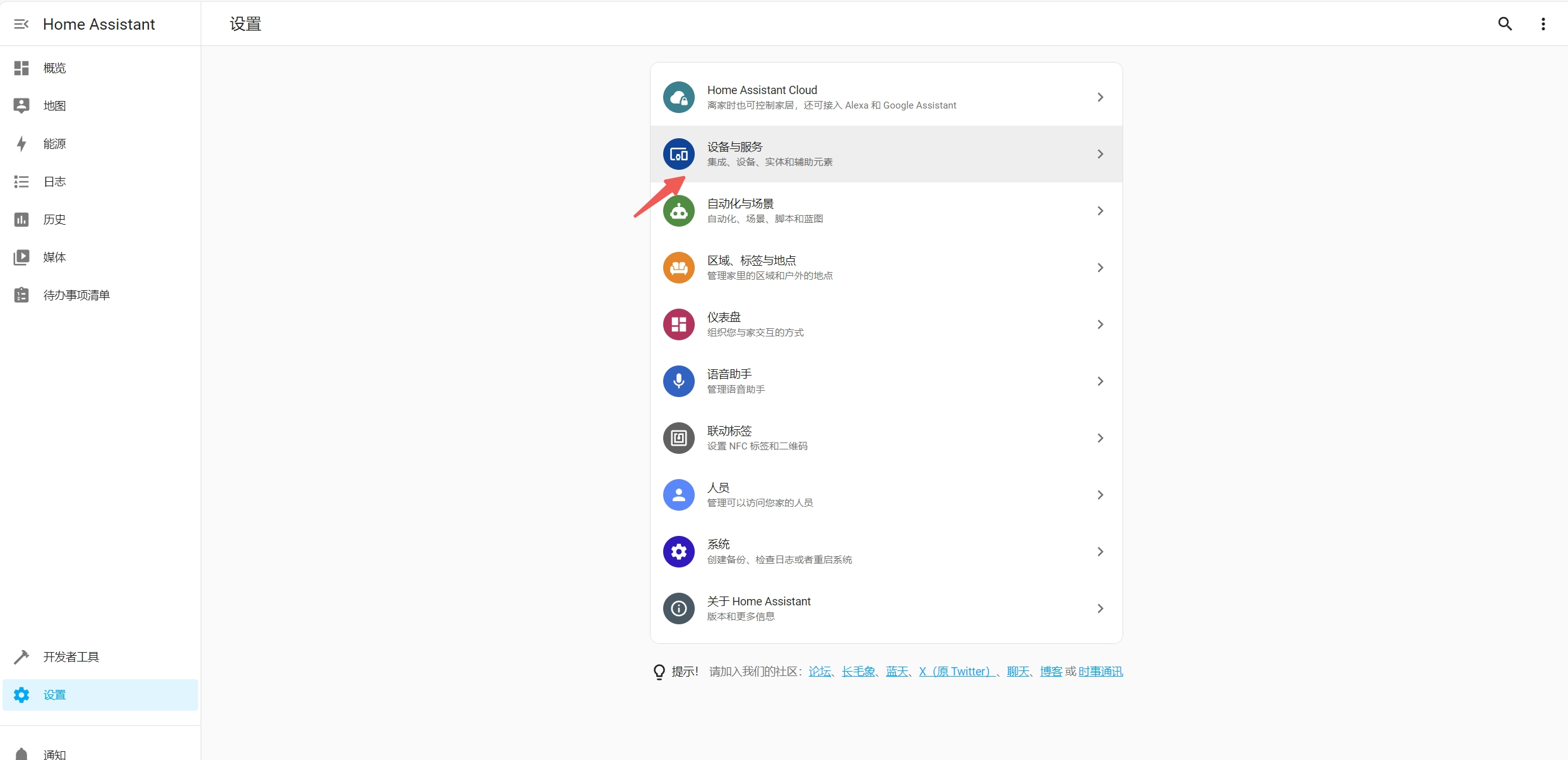 这里我们看到需要HA服务器链接,其实就是我们运行的HA容器。