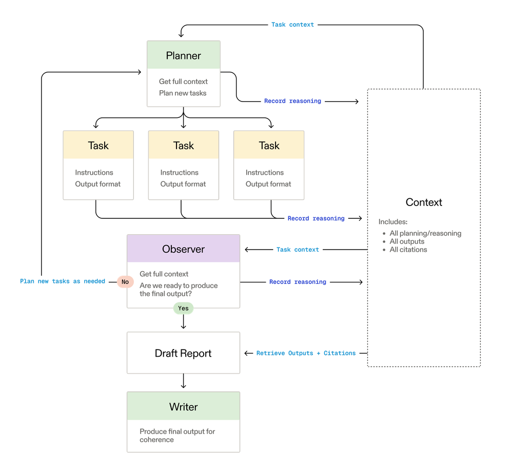 这种灵活性让系统既能处理简单的单任务查询,也能应对需要大量并行研究的复杂多面向请求。