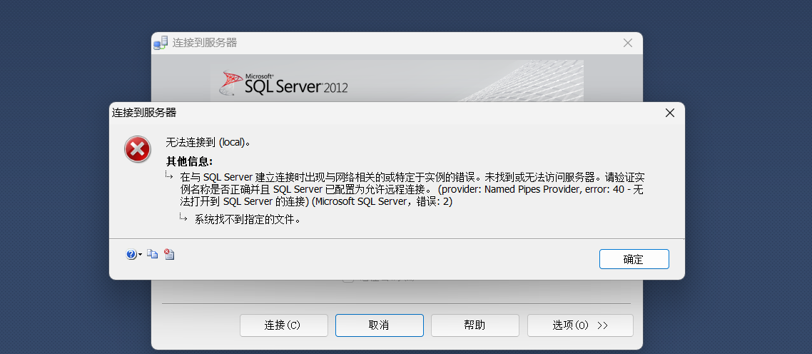 这个时候我使用windows验证的方式(其实这个我是忘记了的,是我之前写的这个文档发挥了作用),但是出现了下面的这个弹窗,我再一次遇到了问题;