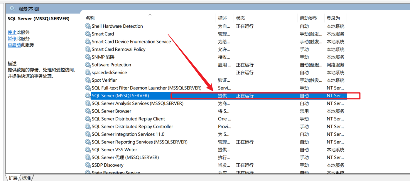 其实上面的无法连接的问题,是因为我们的这个数据库服务没有运行起来,就是下面的这个,我们需要找到这个数据库服务,右键,那他运行起来,原来我的这个是没有运行起来的,运行起来之后上面的这个链接的问题就解决了;