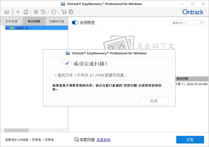 本次扫描结果显示,找到了 81.37KB 的可恢复文件。