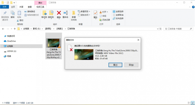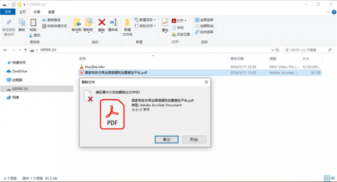如下图所示,在选中电脑中的文件后,使用“Shift+Delete”键就可以将文件永久删除。如果想要恢复永久删除的文件,请不要再对电脑进行任何数据写入的操作。因为,新数据的写入会覆盖文件所在的扇区,增加文件恢复的难度。