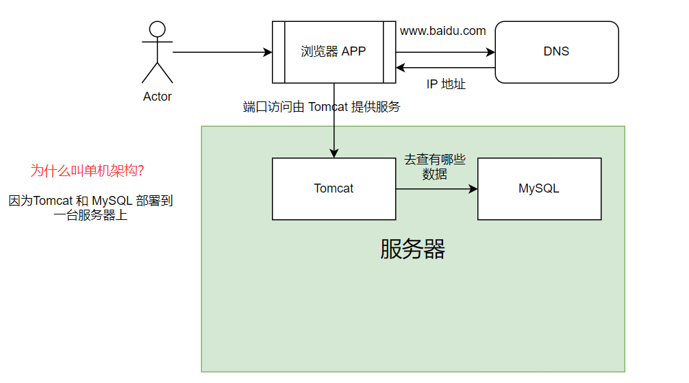 出现原因:出现在互联网早期,访问量比较小,单机足以满足需求。
