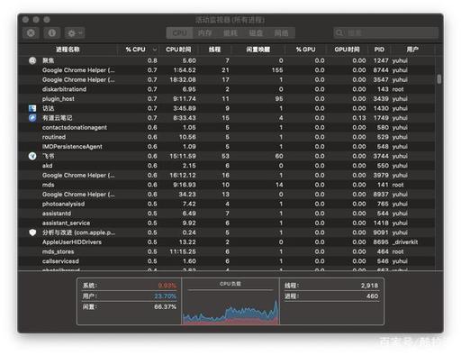 使用 windows 电脑的时候,遇到电脑卡住,打开 windows 资源管理器,查看当前运行程序的资源占用状况,将死锁的进程强制关闭即可。在 Mac 系统当中,也有类似的功能那就是系统活动监视器,在活动监视器窗口你会看到当前运行进程及相关的系统资源占用情况。一共有五个列表,包括 CPU,内存,功耗,磁盘,网络。如发现有异常程序,直接在活动监视器中,点击终止相关进程。