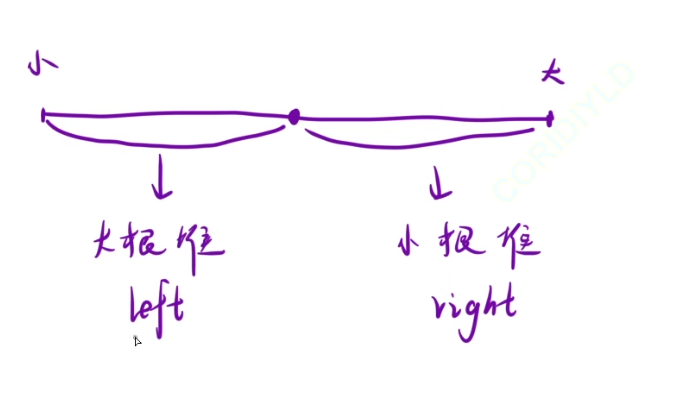 */左边是大根堆,堆顶是最大的数,右边是小根堆,堆顶是最小的数