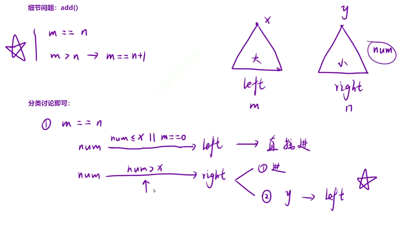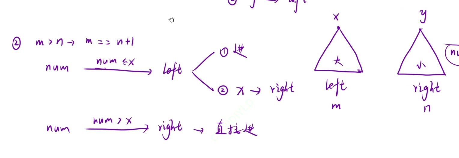 left.push(num);//我们直接放就行了,就能保证左边的堆大于等于右边的堆