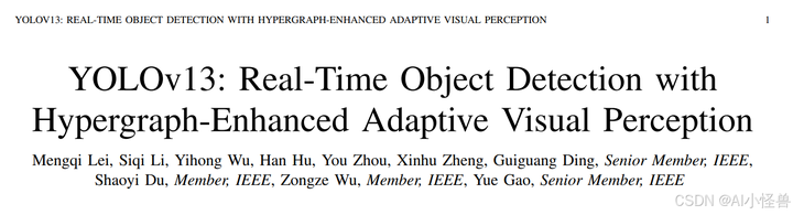 论文:[2506.17733] YOLOv13: Real-Time Object Detection with Hypergraph-Enhanced Adaptive Visual Perception