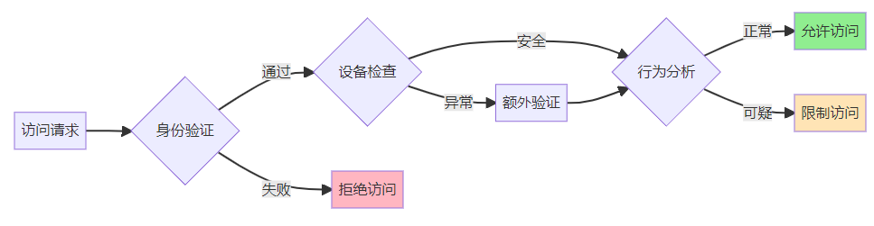 - 访问决策基于动态风险评估:不是一刀切,而是因人而异