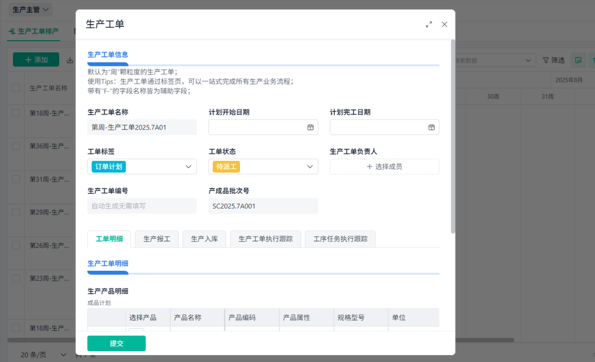 生产小工单通常由系统自动生成,基于生产计划、订单需求或者工作站请求等触发机制生成任务。在实际操作中,系统可以根据不同的触发条件(例如生产线任务完成,设备出现故障等)自动创建生产任务并分配给相应的工作站或生产人员。