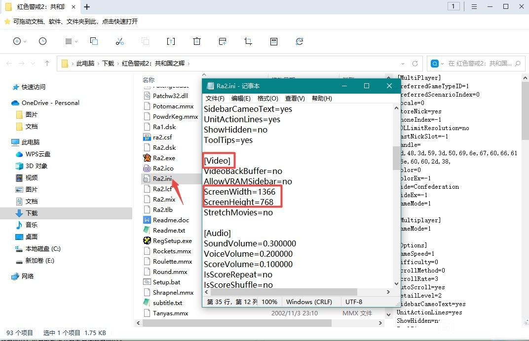 3、然后将【ScreenWidth】和【ScreenHeight】修改为【1024×768】,如果还是玩不了就改成【800×600】的分辨率即可。