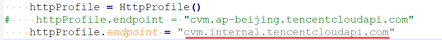 httpProfile.endpoint = "cvm.internal.tencentcloudapi.com"