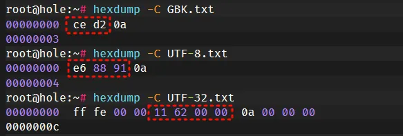 1. 图中0x0a是换行符,0xfffe0000是utf-32的前导BOM用来说明后边是什么编码,什么字节序。