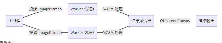 在实测中我们发现,当处理 4K 以上图像时,传输时间可能超过计算时间。此时采用“计算靠近数据”策略,在 Worker 内完成解码->处理->编码全链路,性能提升 40% 以上。