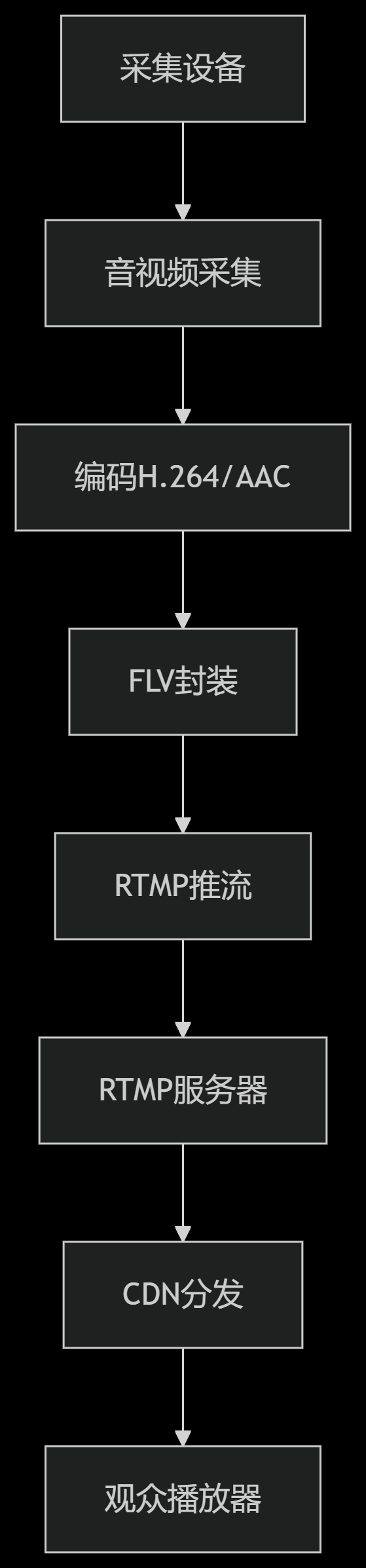 直播推流技术的核心是将音视频数据从采集端传输到服务器,再分发给观众的过程。主要包含以下几个关键环节: