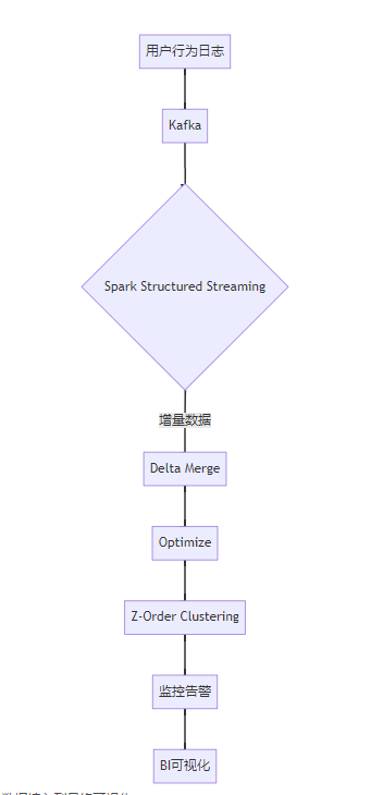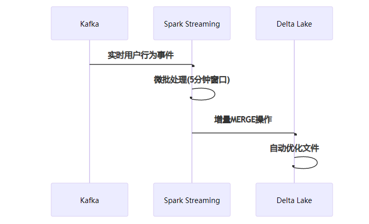 图解:CDC数据通过Kafka接入,Spark Streaming进行微批处理,最后写入Delta Lake