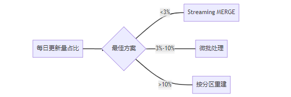 关键洞见:在测试数据集上,增量更新策略展现出近乎恒定的时间复杂度(O(ΔN)),而全量计算为O(N)。当每日更新量小于总量的5%时,增量方案优势超过10倍